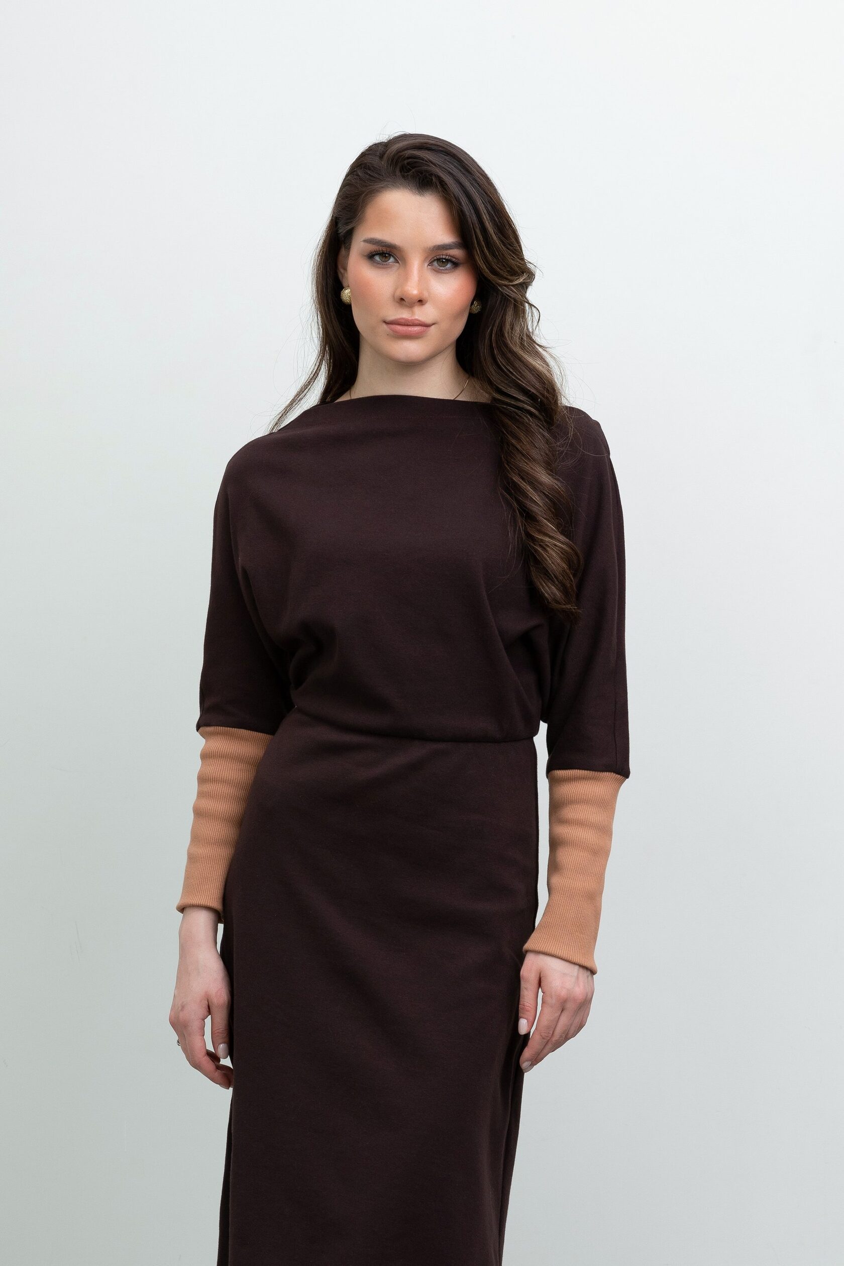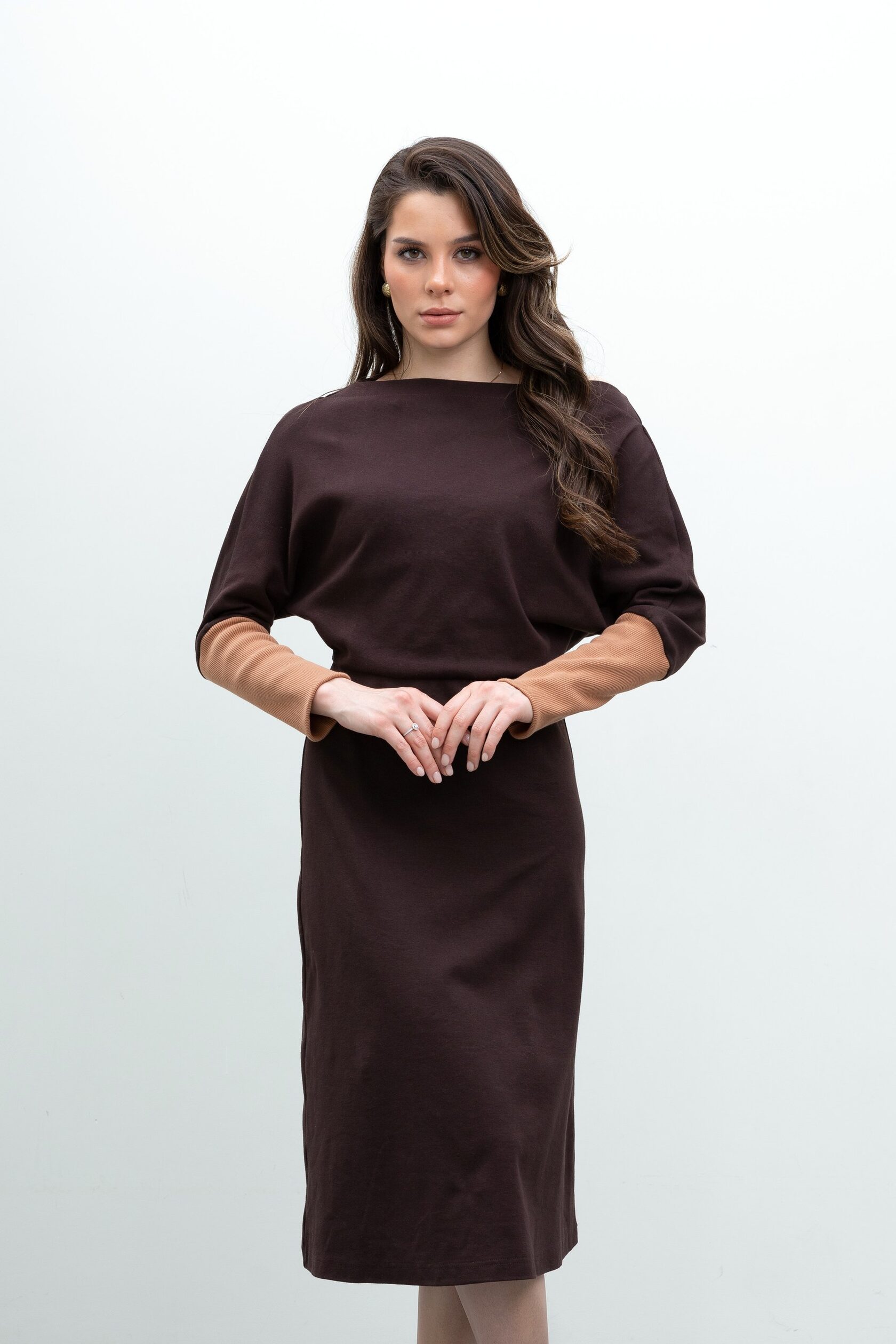Трикотажное платье, которое идеально подчеркивает фигуру благодаря цельнокроеным рукавам и стильному вырезу лодочка. Отрезное по талии, это платье создает утонченный силуэт, который подходит как для офисных встреч, так и для вечерних выходов. Мягкий и приятный на ощупь трикотаж обеспечивает комфорт на протяжении всего дня. Выберите это платье, чтобы добавить нотку sophistication в ваш гардероб и быть в центре внимания в любой ситуации! Не упустите шанс стать обладательницей этого стильного и универсального наряда!