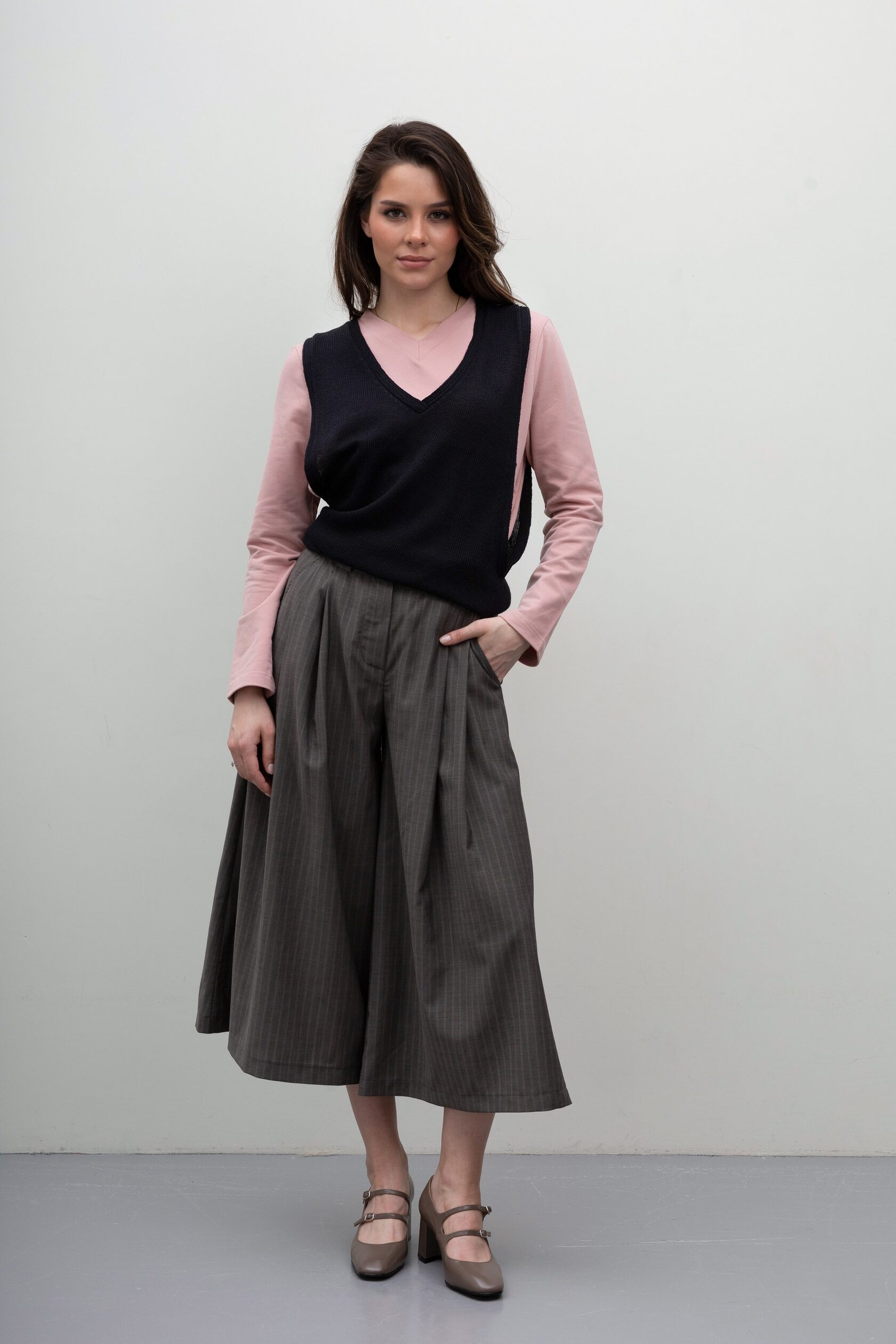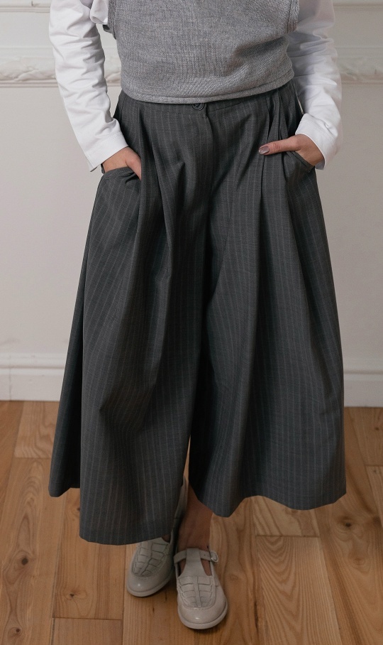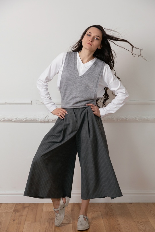 Идеальное сочетание стиля и комфорта с нашими юбкой-брюками из высококачественной костюмной ткани! Состав из 70% шерсти и 30% шелка, произведенный в Германии, обеспечивает непревзойденное ощущение и долговечность. Эта модель идеально подходит для любого повода, добавляя элегантности вашему образу.