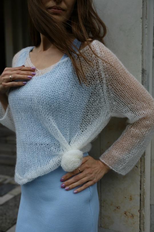 Уникальный свитер, выполнен из невесомой паутинки. Эта универсальная модель предлагает три разных стиля в одном изделии! Вы можете носить его с треугольным вырезом спереди или сзади, а также легко вывернуть наизнанку, демонстрируя объемные аккуратные швы. Представьте: покупая один свитер, вы получаете целых три варианта для создания неповторимых образов! Как носить? Этот свитер идеально сочетает с топами, блузками или водолазками, добавляя нотку элегантности в ваш повседневный гардероб.
