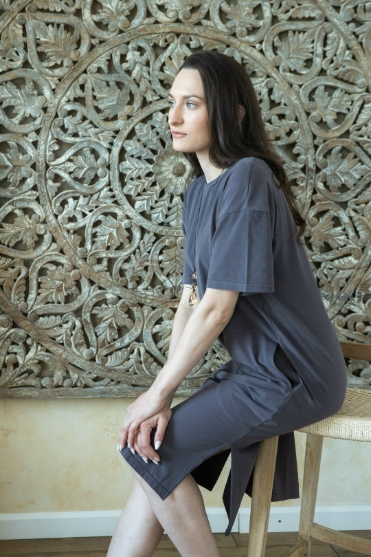 Женское платье-футболка — идеальное сочетание стиля и комфорта! Выполнено из ткани премиум класса! Эта модель с карманами и стильными разрезами по бокам — ваш незаменимый помощник в создании модного образа на каждый день. Длина чуть ниже колена и утонченные разрезы по бокам придают платью изысканный вид, который идеально подходит как для повседневной носки, так и для особых случаев. Изготовлено из высококачественной кулирки компакт пенье, наше платье дарит ощущение легкости и приятного касания к коже. Выберите между приятным оттенком стоун и яркой морозной ягодой — оба варианта добавят акцентов в ваш гардероб!