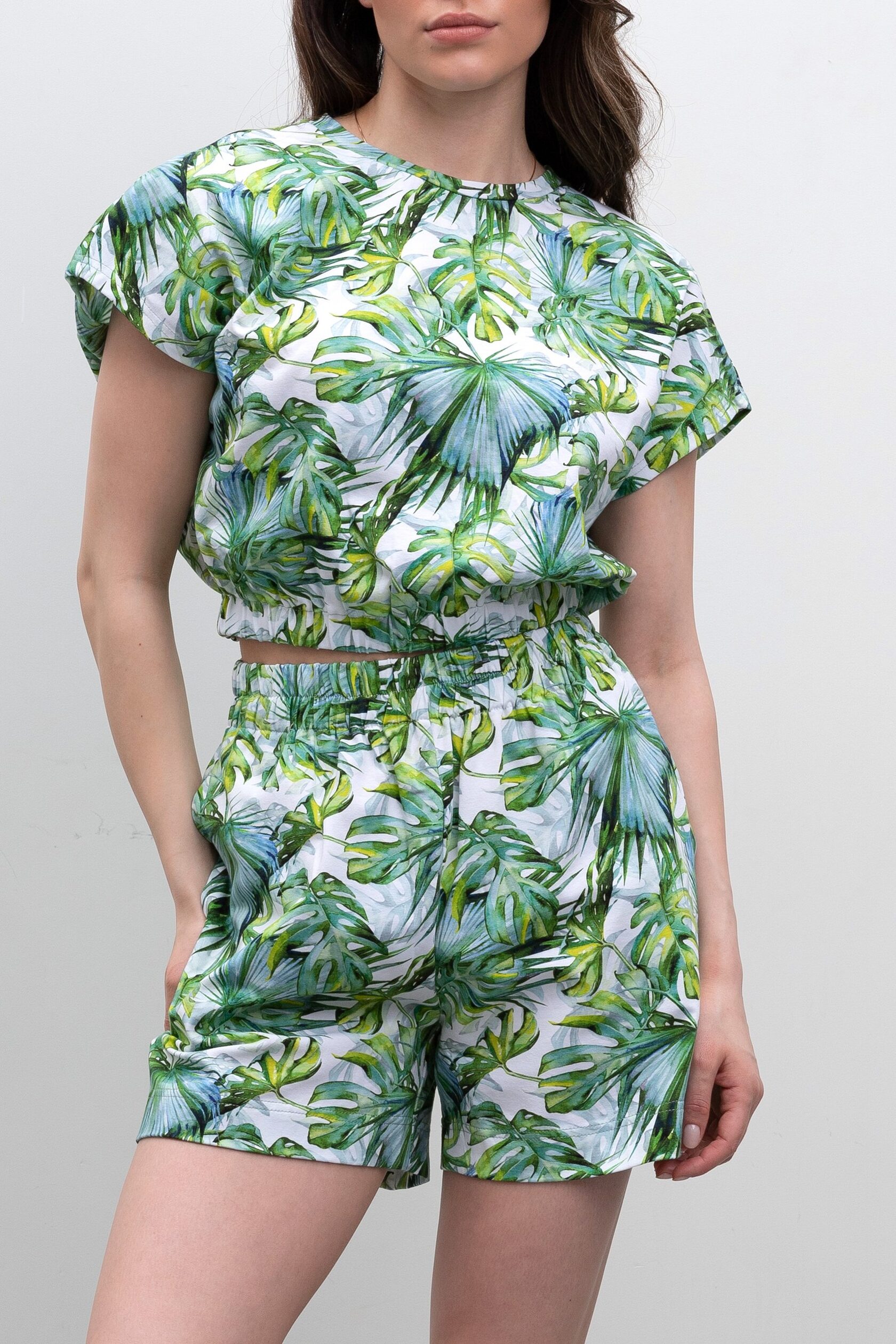Стильный летний костюм, состоящий из элегантного топа на резинке и шорт, доступных в двух длинах. Этот комплект идеально подходит для создания разнообразных образов: вы можете легко сочетать топ как с короткими, так и с длинными шортами, что позволяет адаптироваться к любым условиям. Летний костюм станет отличным выбором как для активных прогулок на свежем воздухе, так и для занятий спортом. Благодаря легкому и воздухопроницаемому материалу, он обеспечит вам комфорт даже в самые жаркие дни.