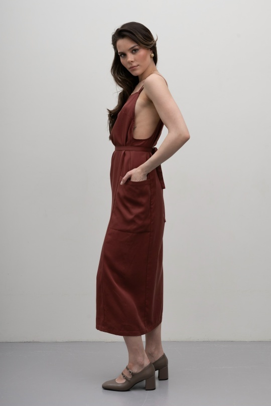 Летний сарафан на бретелях, длиной ниже середины икры, с поясом. Эта модель идеально подходит как на голое тело, так и в сочетании с футболкой или блузой. Сарафан отличается низкой проймой и свободным силуэтом, а накладные карманы расположены на боках, добавляя функциональности и стиля. Сделан из модала — это высококачественной ткани, изготовленной из древесной целлюлозы, преимущественно из эвкалипта или бука. Модал славится своей мягкостью и шелковистым ощущением на коже, а также отличной способностью отводить влагу, что обеспечивает комфорт даже в самые жаркие дни.
